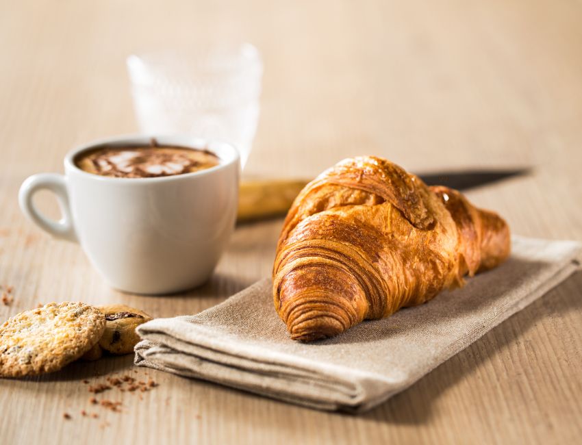Croissants are flaky, buttery pastries with a golden crisp outside and soft, airy layers inside—perfect for pairing with your favorite coffee or tea.